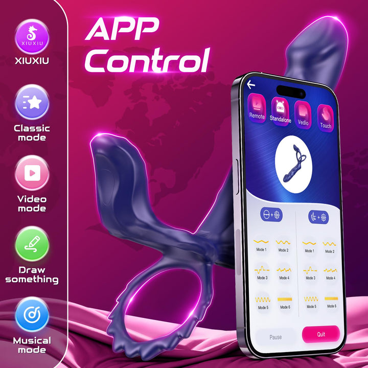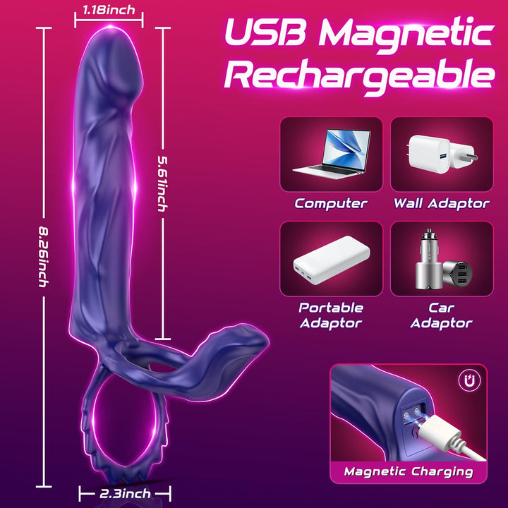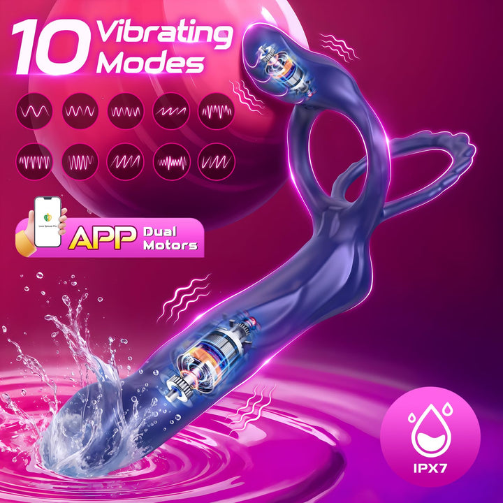 Presenta una forma realistica del pene e 2 vibratori per stimolazione simultanea. Il pene e l'anello per i testicoli offrono contrazioni delicate per migliorare l'erezione e prolungare il piacere durante le sessioni intime.
